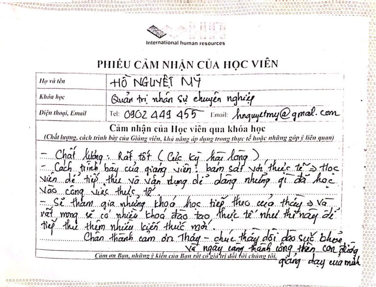 Tham gia khóa: QUẢN TRỊ NHÂN SỰ CHUYÊN NGHIỆP
